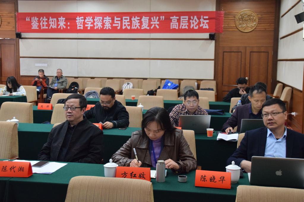 举办的“鉴往知来:哲学探索与民族复兴“高层论坛在韶山宾馆隆重召开。来自国内著名高校35位专家学者以线上线下相结合的方式共赴学术盛宴,共同开启哲学探索和民族复兴的时代话题。