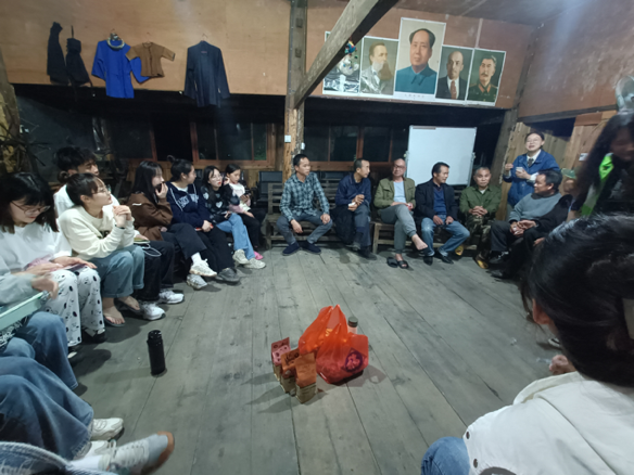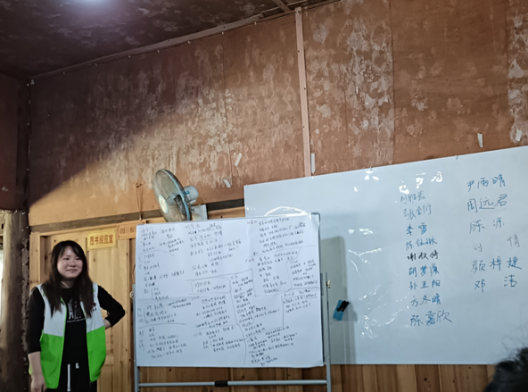 驻村社工——长沙同行者社会工作服务中心社工邓洁也向同学们介绍了落户洞雷村的“三区计划”社会工作参与乡村振兴项目,并分享了驻村经历和感受。洞雷村作为典型的少数民族地区、革命老区、贫困山区,在现代化发展的冲击下,面临着村寨发展的困境,如留守人群问题、民俗文化传承危机、村寨生态环境破坏、社区生计来源单一等,基于村寨困境,该项目点以专业社工团队驻村开展社会服务为抓手,从村寨留守人群服务,留守儿童、留守老人、留守妇女作为服务切入,贯穿社区互助生计、侗文化保育与传承、生态环境改善、村寨自治与公共参与以及本土社工人才培训等各方面服务要素,通过社区为本的整合社会工作专业手法,联合村内各组织,进行能力提升及资产建设,以达到村寨发展和侗文化复兴的目标,与村寨村民共创美好可持续生活。驻村的社工小伙伴和项目督导对同学们所发现的问题一一做出回应,并就同学们所关注的村民生计方面展开了系列讨论。在交流过程中,同学们收获满满,不仅仅是自身实践中的成长,还是有着丰富农村社会工作经验前辈对自身的指导。