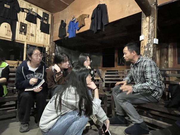 研学第二站,在周金玲博士的陪伴下,研学团队到达了本次研学实践活动的目的地——通道侗族自治县陇城镇洞雷村。首先,在驻村社工的帮助下研学团队以社区漫游的方式对村落形成初步的认识,了解村落的历史文化,主要建筑、人员构成、生计构成等多方面的讯息,以脚步度量村落、以真心感受村落的现状。洞雷村为侗族居民聚集地,历史文化悠久,文化资产丰富,是湖南省社会工作专业人才支持“三区计划”社会工作参与乡村振兴服务项目点,是《边远贫困地区、边疆民族地区和革命老区人才支持计划社会工作专业人才专项计划实施方案》的具体落实,该项目社会工作专业介入近7年,有着丰厚的乡村建设实务积淀,是社会工作参与乡村建设的鲜活样本,对研学团队深入学习社会工作介入乡村建设有着重要价值。对村落基本了解后,研学团队的同学们分享以专业视角在“洞雷村”所发现的问题,并结合自己所感兴趣的方向进行分组调研。经过一番激烈的讨论,最终研学团队共分为3个小组围绕着“传统文化的传承与没落”“洞雷村建筑风格变迁”“洞雷村妇女生计现状”三个主题展开调研。研学团队的同学们与村民们“同吃同睡同劳动”,以参与式观察、无结构访谈法、文献法、座谈会等方式对本组所聚焦的问题进行调查并进行分享。分享过程中,同学们以真实案例和具体数据为支撑,将洞雷村的“传统文化传承与没落”“建筑风格变迁”“妇女生计”三个主题阐述清楚,并就所调研的结论进行了总结与反思。