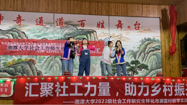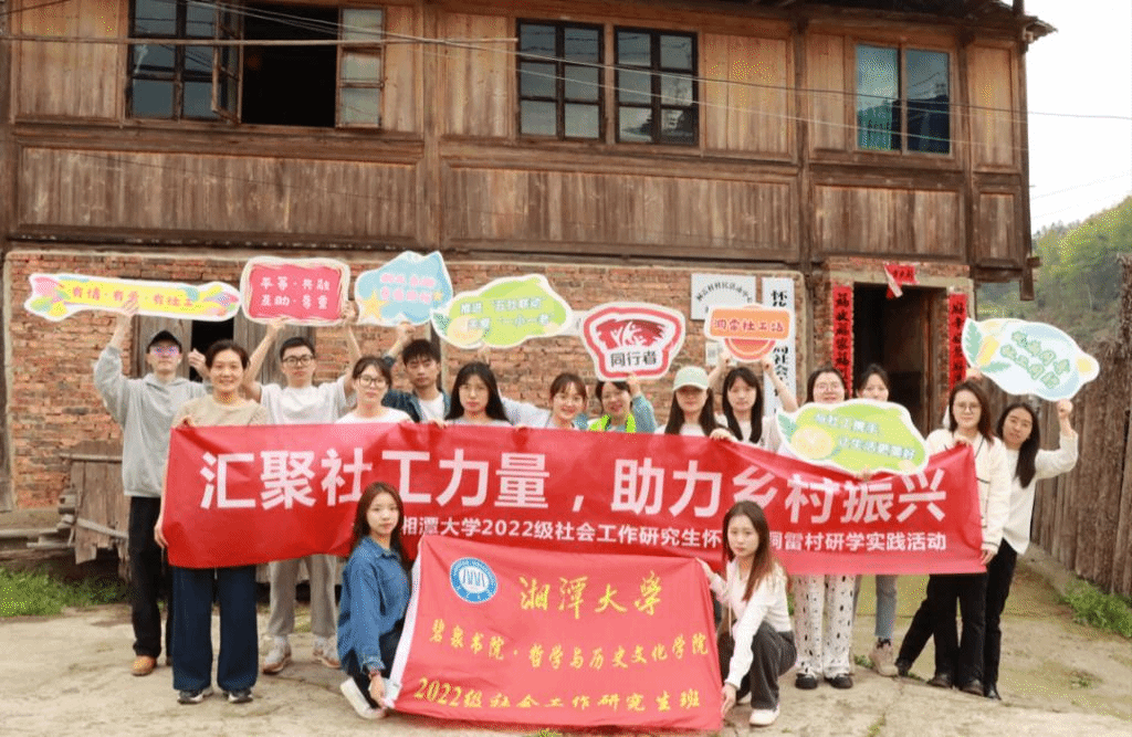 •哲学与历史文化学院社会工作教育中心组织的社会工作专业硕士研究生,前往怀化市通道侗族自治县洞雷村开展以“汇聚社工力量,助力乡村振兴”为主题的研学活动。本次研学由社会工作专业教师王林丽带队,共15位2022级社会工作专业研究生参与。研学团队在怀化市民政局了解社会工作人才队伍建设,深入洞雷村,实地调研社会工作专业人才支持“三区”计划通道县洞雷村社会工作参与乡村振兴服务项目。整个活动历时四天,在走访、座谈、实践中,充分认识到社工与乡村振兴的密切关联。