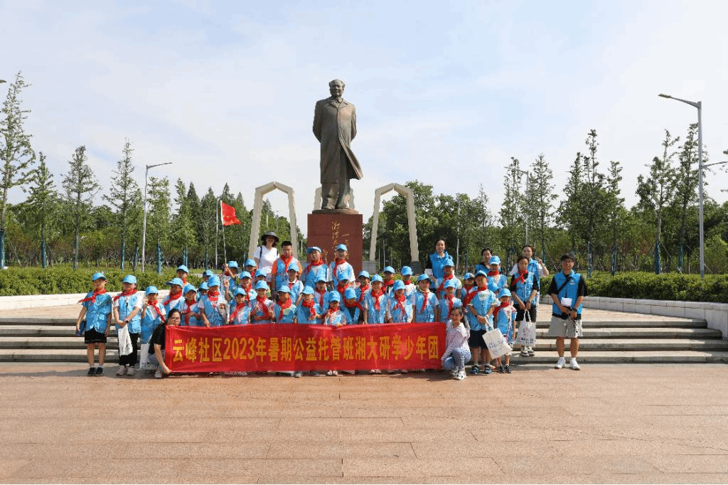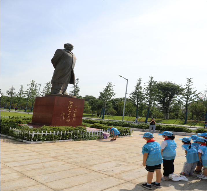 开展研学活动,孩子们首先在毛主席铜像广场进行了献花仪式,向毛主席表达了他们自身崇高的敬意。