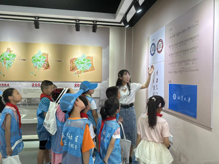 的建校史、校园文化等等。在此过程中,孩子们充分感受到了湘大校园浓厚的历史文化以及优秀的学习氛围。相信此次研学能够让孩子们更深刻的感受到学习的重要性,更好的了解现代科技的发展,好好学习,天天向上,努力成为国家的栋梁,为社会做出贡献!