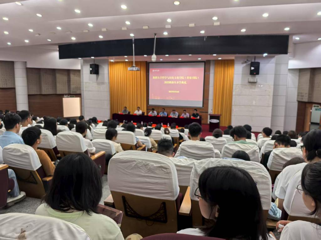 院长张今杰教授在讲话中全面介绍了学院的学科优势与文化底蕴,强调始终以培养“兼具人文素养与时代担当的人才”为目标,并寄语新生,要珍惜校园时光,在思辨中锤炼思维,在实践中增长才干,努力成长为无愧于时代的栋梁之才。